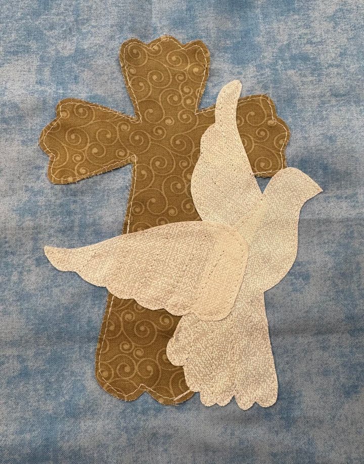 Dove and scalloped cross applique pattern