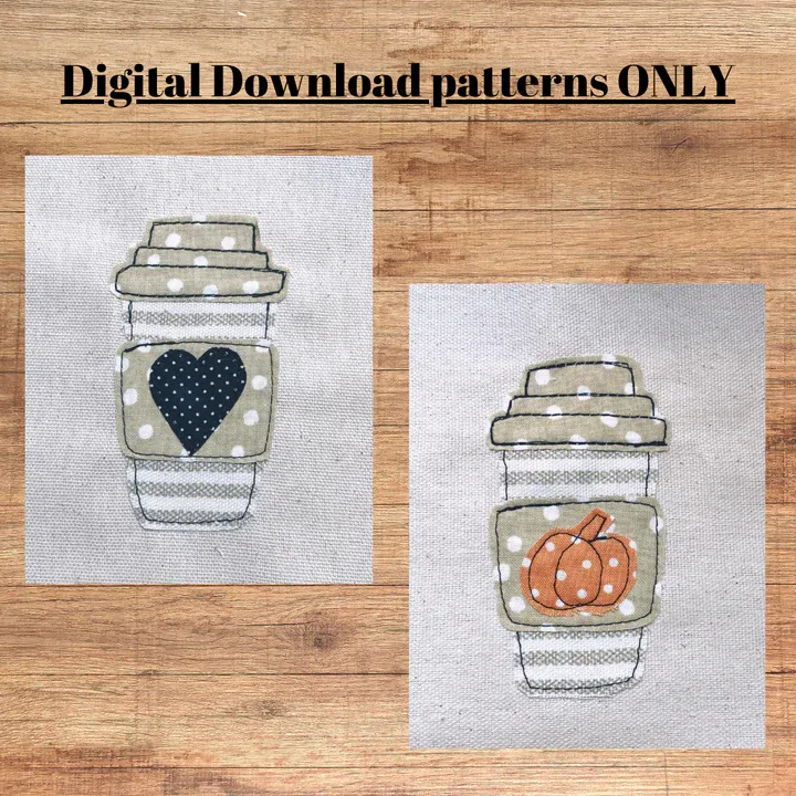 Pumpkin and regular coffee cup applique patterns in 4 sizes